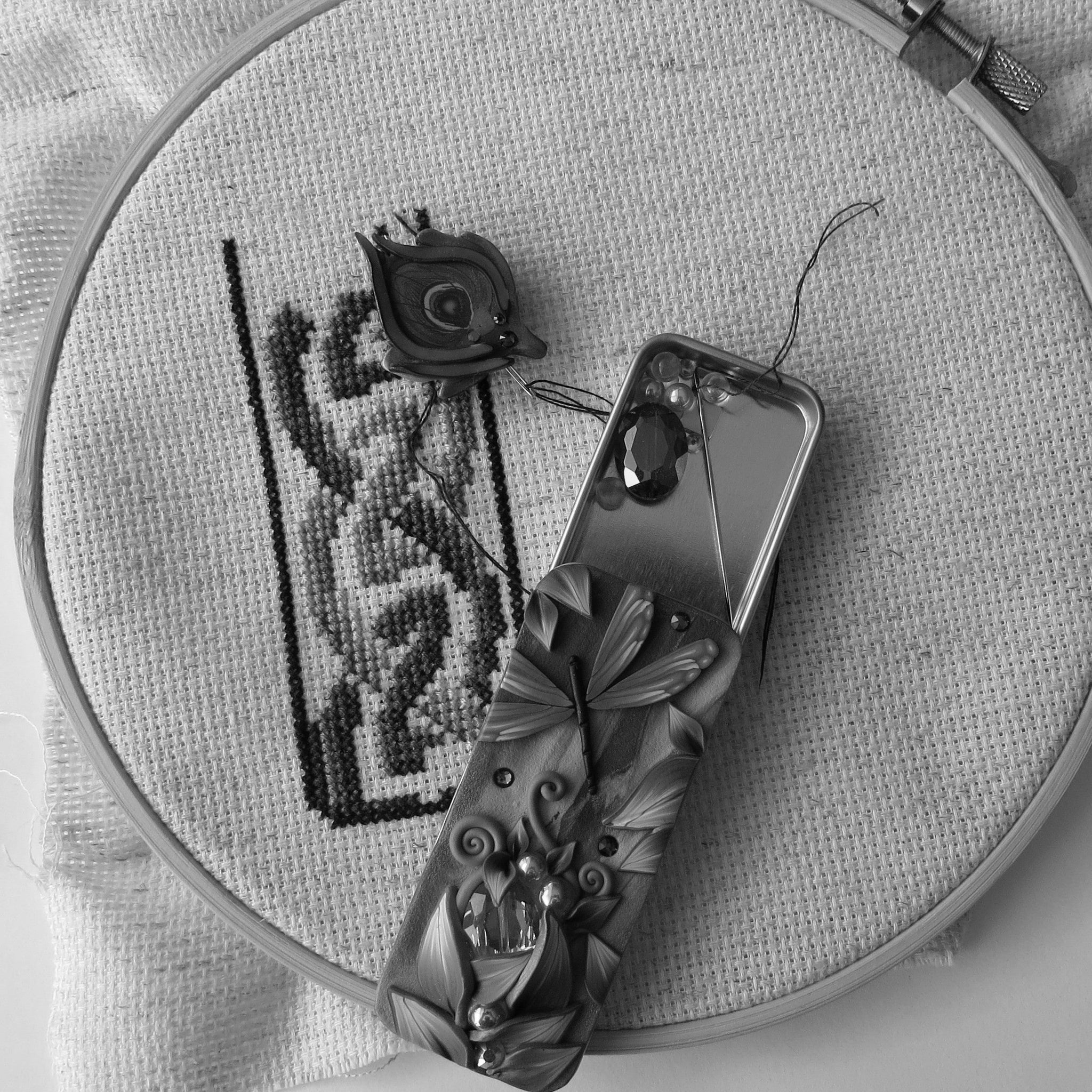 This is a slide-top tin needle case that has been covered with polymer clay.